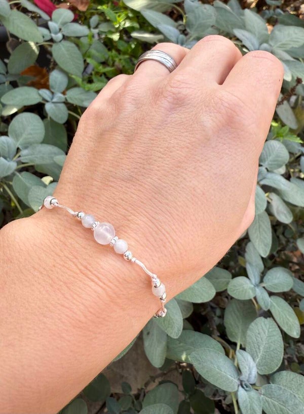 Material: Mondstein weiss, 925 Silber, Polyester Garn
